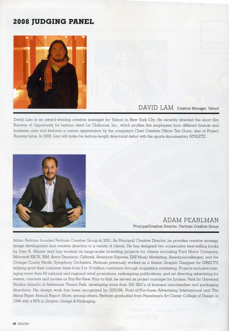 ViewWinners receive an embossed Certificate of Excellence and become eligible for reproduction in the Graphic Design USA's Awards Annual, seen by over 100,000 colleagues and clients each year. The 2008 Design Annual, with the winning entries, will come out January 2009.