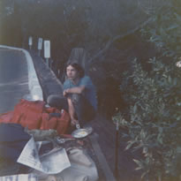 ![]() Brian's mom dropped us off at the Hexagon in Tilden Park (where I later lived for a month or so). We stayed at the "Little Forest" for 3 days (just south of Wildcat Peak). We had rebuilt the "Little Forest" fort with an axe and stayed in my tube tent. Then onto Wildcat Peak and the observation structure. Many times in the past my Mom, Dad, my sister Sue, Andy (our Peke) and I would hike up to this incredible view point. This is looking back west to Kensington Hilltop School and the bay area. On clear days you could see the Farallon Islands from here. ![]() Brian Running was part Native American and a fellow artist. I believe that he was a senior then and was a very accomplished oil painter that mentored me at El Cerrito High. He was also a mutual, friend of my neighbor the Cain's - went to the Mormon "Family Home Evening" on monday nights. He actually lived downstairs in the cellar of their house for a time. ![]() Me and my $30 pack bought with paper route money from the Ski Hut on University Ave. in Berkeley. Look how skimpy that sleeping bag looks. Adidas "hiking" shoes. Brian's pack at right. ![]() Brian here preening. The strap on Brian's pack broke but we fixed it (which saved the trip). We had to cross illegally over government Nike base property to get down the hill. ![]() Brian and another nice view of San Pablo Res. and my pack. Brian almost quit walking and hitching. At the last moment I stuck my thumb out and we got a ride to Briones. It saved the day! This was still back in hippy days so people actually picked up hitchhikers back then. We stayed at a Briones shelter and gave each other the cold shoulder - but soon became friends sensibly and went thru the park to Layfayette via Happy Valley Road. ![]() It took a while to remember what this was. It is along Happy Valley Road after the egg break. As we walked along we noticed quite a few hawks and turkey vultures. In the middle (not the sky but the land) is a black dot - a vulture - took 3 more photos but they didn't turn out. ![]() We camped at Castle Rock Rec. Area. Lots of people camping, music. parties. After a week Brian bade farewell and I was on my own. Alone, but peaceful. I found a campsite back up the mountain. Not as many people but lots of animals. Deer came in to feed as it became evening as you can see in the photo. ![]() This racoon came in next - he was even more agressive - I fed him M & Ms - he couldn't get enough of them. ![]() Braver... that's him at post-it note arrow. That's my dinner: rice-a-roni, cooking oil, hot chocolate and then my little red radio. The next night I awoke slowly to the sound of a rattler near me. Kinda freaked me out when I flashed my light on him. It was the middle of the night - prob. no moon. So I packed up and went up a trail - saw black moving lumps - turned out to be trantulas out hunting. So then I went in the middle of the road where I could hopefully see things better. But I came across another rattler in the middle of the road so back down the hill I went. I stashed my pack in an outhouse and slept in there. Eventually I left Mt. Diablo and headed back home. I went back through Briones Park. I remember walking through in the early morning dew and sunrise listening to Janis Joplin on my red radio - "Windshield wipers slappin' time as Bobby sang the blues and I sang every song I knew..." 09/72 • Lived in Tilden Regional Park • About the month of 09/72 I was in a beautiful hexagonal, open on 1 side, ampitheatre - with a fire pit in the middle. I slept inside with a good fire going. In the morning I would stash my stuff under some brush nearby, walk up the hill then down to the Chevron station on the Arlington in Kensington and wash up in the restroom and then do my paper route. Then catch the bus to El Cerrito High. At the end of the day I would do it all back in reverse. 10/72 • Lived in various fields in Kensington - a gully back behind Brian Lemmon's house - I would stash my pack there. I got my paper route back. Then onto a large field next to the Young's house across the street from where I eventually moved to...on Beloit. I got tired of pickin' straw out of my hair so started asking my subscribers if they knew of any place cheap to stay. 11/72 • ??? Beloit Ave., Kensignton, CA. Moved into the house of one of my paper route subscribers. Deal was I would pay $5 a week and live upstairs and kinda look after his elderly mom. He lived downstairs. The place was a pig stye. Open food all over the counters. His mom was in her 60s - was a retired UCB math professor who was insane (supposely became that way after her husband died). She would only talk to me via a mirror in the bathroom - she would say - "who is that man?" A RN would come in once aweek to bathe her, etc. I just went about my business cleaning and fixing up the place. I was living in splendor compared to how I had been living. I had my own room upstairs that had a big window that looked out at a panoramic view of the bay. I constructed a long bird feeder tray right outside the window and would watch the blue jays come and feed. Eventually the son's money grabbing sister and her boyfriend came over to stay and things went bad. Almost got in a fight with the boyfriend one time when my good friend Russ was over. We were going to have to testify in court gainst them for our landlord. They even found my parents to complain to them - I guess that I was a minor. So eventually I had to go back home.... 06/74 • Graduated El Cerrito HS • Go back home for 1 month El Cerrito High Links www.wccusd.k12.ca.us/elcerrito 010107rev010107 www.newechs.org 010107rev010107 www.elcerritoalumni.com 010107rev010107 |